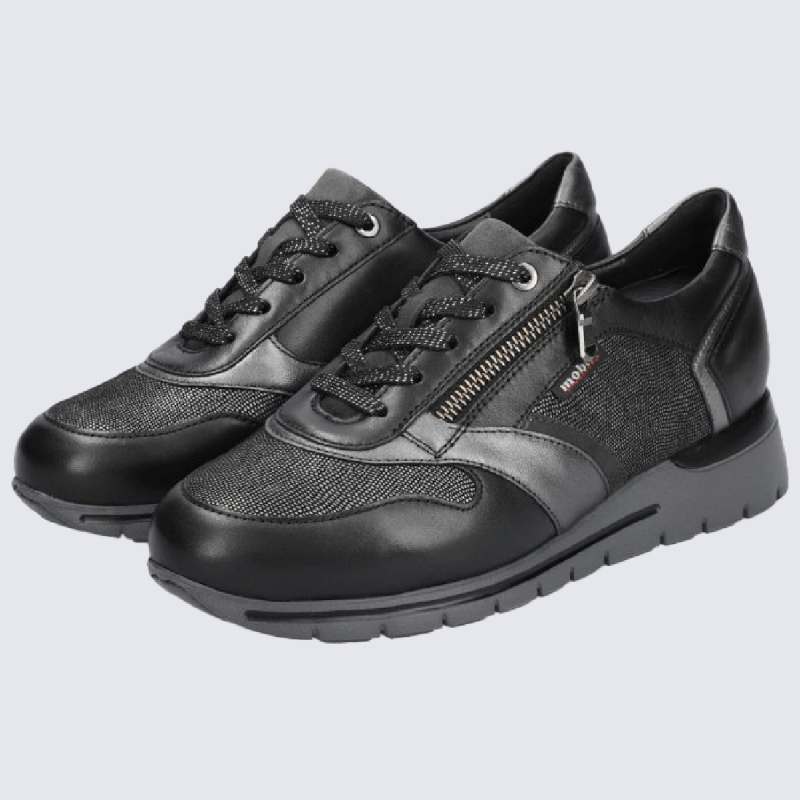 Ces chaussures à lacets de couleur noire de la marque Mobils sont une option idéale pour compléter vos tenues d'hiver, grâce à leur style qui combine à la fois sportivité et élégance. Dotées de la technologie SOFT-AIR intégrée dans la semelle intérieure, en association avec le dispositif SHOCK-ABSORBER de la semelle extérieure, elles assurent une excellente absorption des chocs, offrant ainsi une marche confortable et dynamique. Découvrez toute la collection Mobils sur igert.fr !