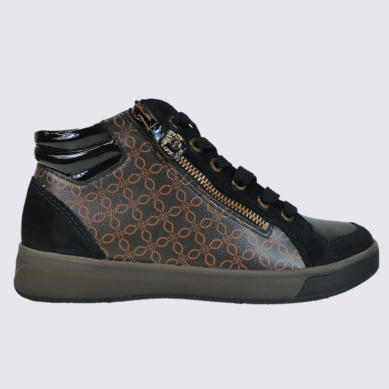 Baskets à tige montante Ara, baskets à motif femme en cuir noir volcan
