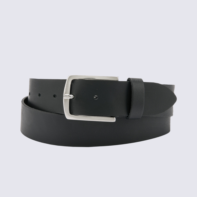 Ceinture Bernd Götz, Ceinture cuir lisse homme en cuir noir boucle argentée classique