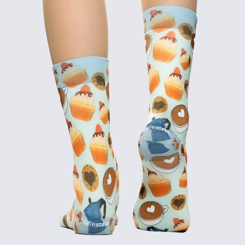 Craquez pour l’univers doux et réconfortant des chaussettes Wigglesteps 05324, décorées d’un motif gourmand mêlant cupcakes, biscuits et tasses de café. Leur fond vert pastel apporte une touche fraîche et originale, idéale pour dynamiser une tenue du quotidien avec subtilité. Confectionnées en coton biologique certifié, ces chaussettes offrent un confort naturel, une respirabilité optimale et une agréable sensation de douceur tout au long de la journée. Leur maille fine et souple épouse parfaitement le pied sans le comprimer, garantissant un port confortable et durable. Fidèles à la philosophie Wigglesteps, elles associent créativité, qualité et engagement écologique pour un accessoire à la fois tendance et responsable. Retrouvez notre nouvelle collection Wigglesteps sur igert.fr.