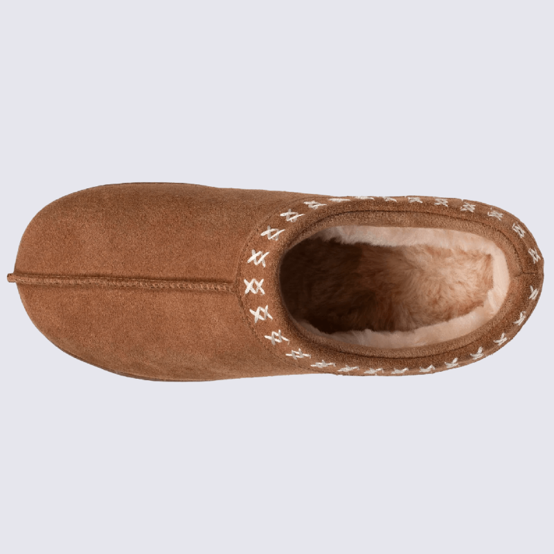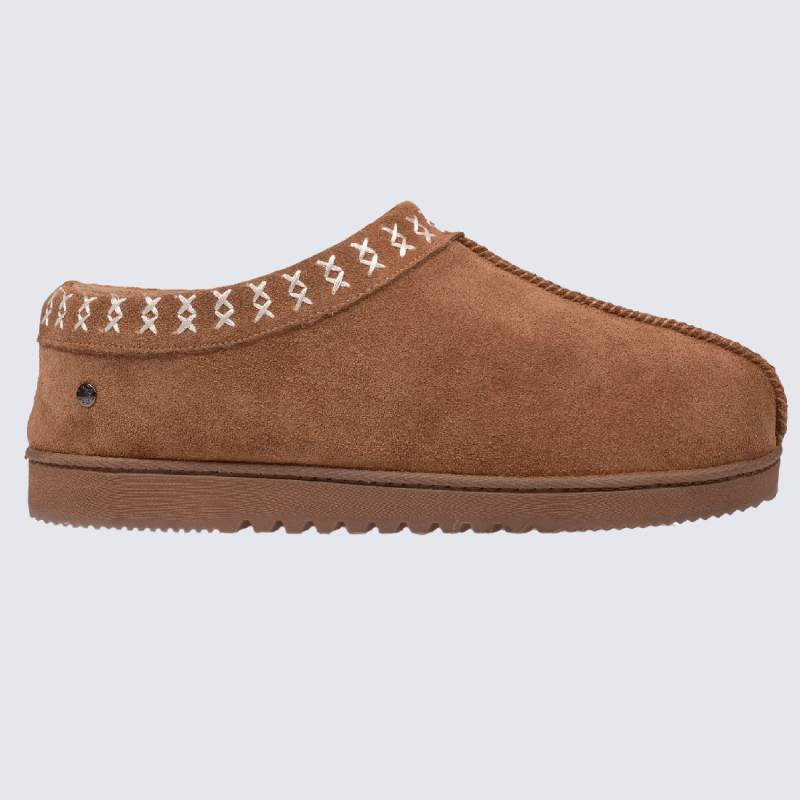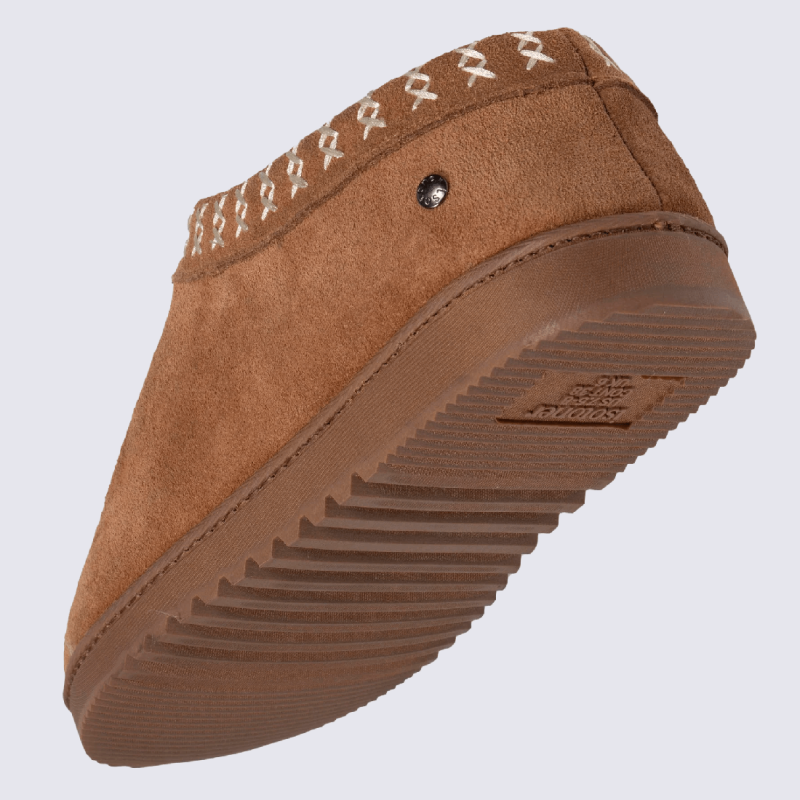 Chaussons Rohde, chaussons fourrés femme en cuir velours camel