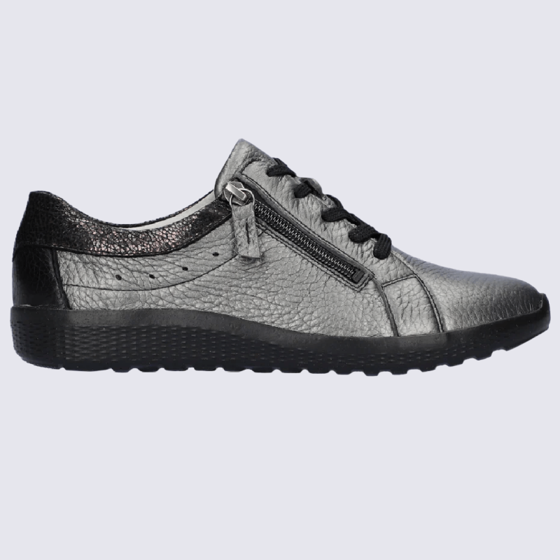 Découvrez la parfaite combinaison de style et de praticité avec nos baskets en cuir argenté dotées d'une fermeture à glissière de la maruqe Waldlaufer. Ces baskets modernes sont conçues pour vous offrir un look tendance tout en vous simplifiant la vie lors de l'enfilage. Découvrez notre collection femme de la marque Waldlaufer sur igert.fr !