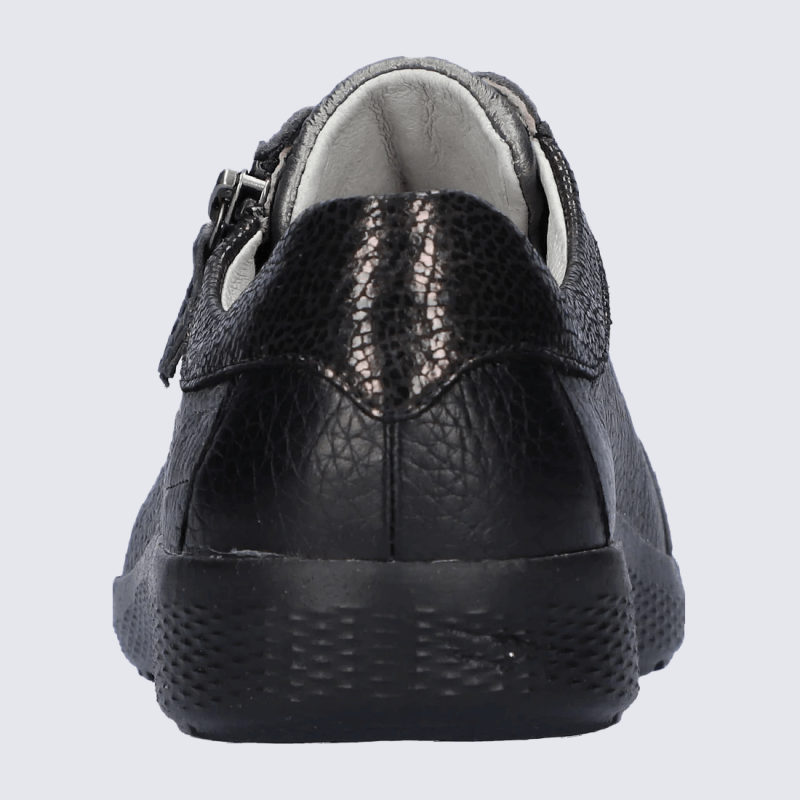 Mocassins Ara, mocassins compensés femme en cuir noir