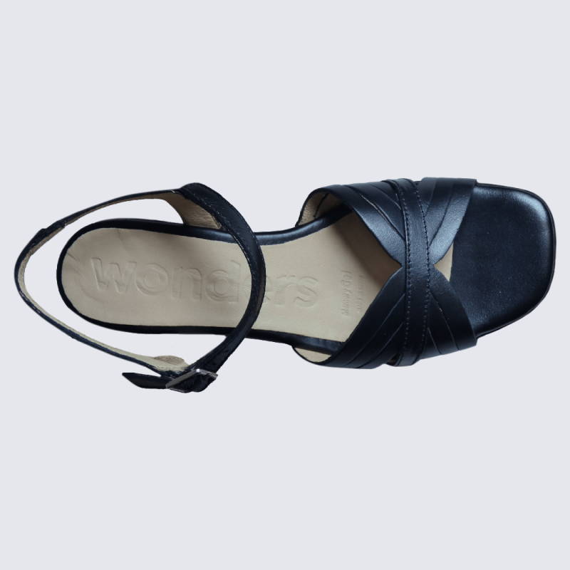Sandales Wonders, sandales compensées et tressées femme en cuir noir