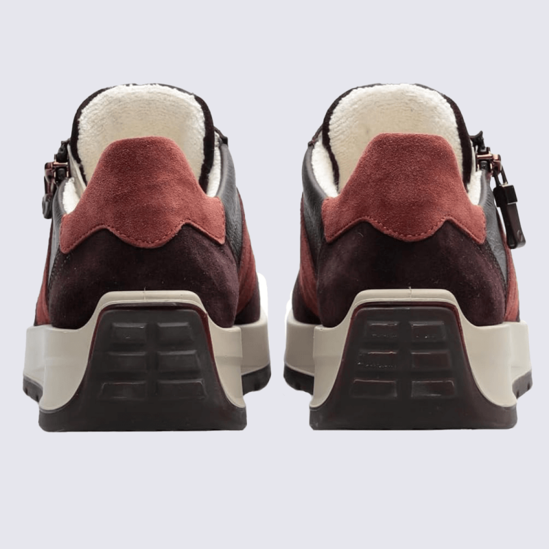 Baskets Ara, baskets moderne et agréable pour femme en cuir marron rouge