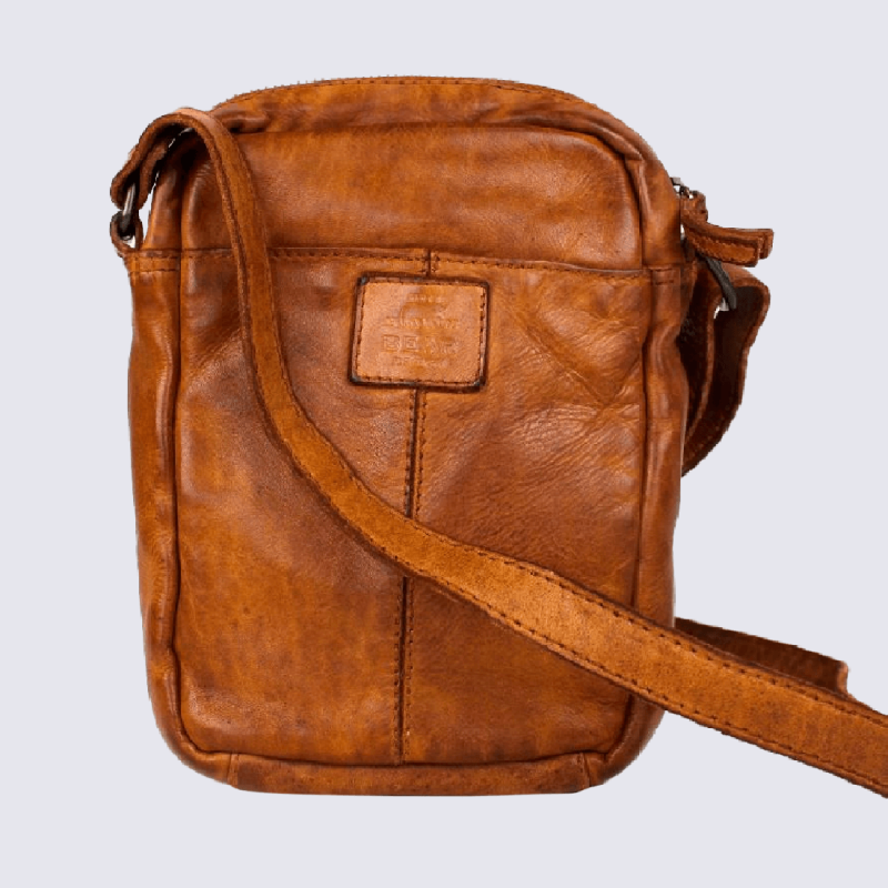 Sac à bandoulière Bear, sac bandoulière unisexe en cuir cognac