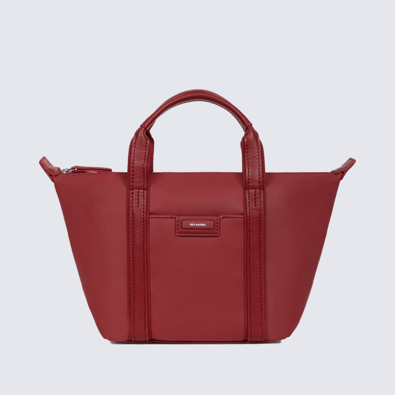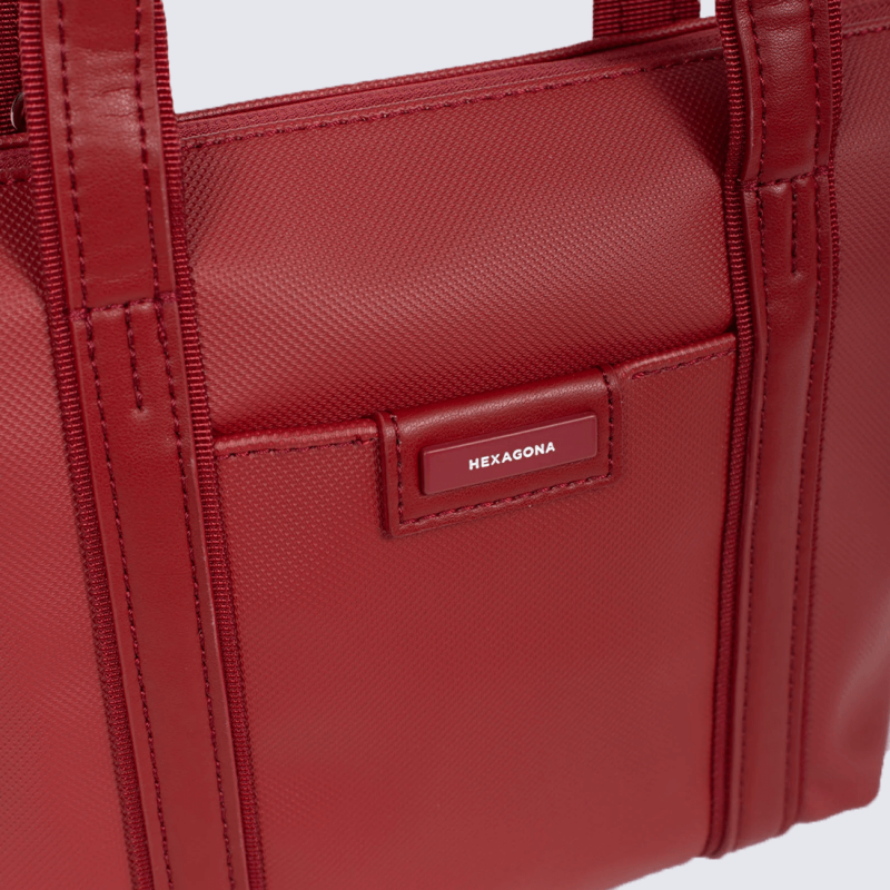 Sac Cabas Hexagona, Sac Cabas simili cuir grainé femme en synthétique rouge foncé