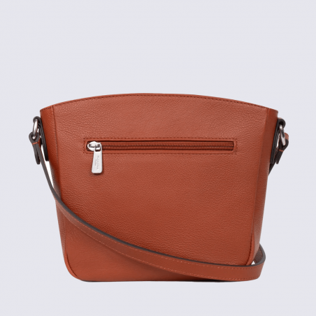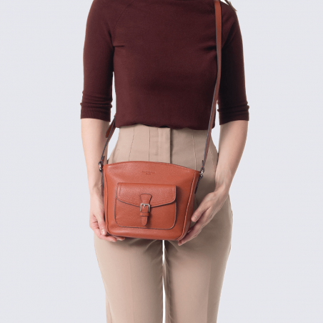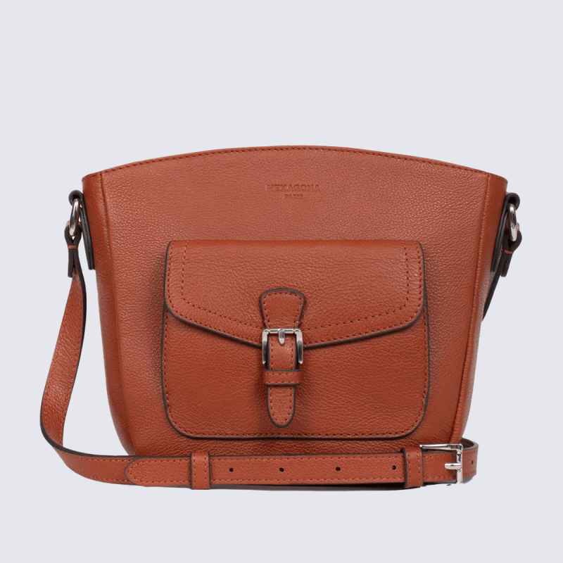 Sac porté épaule Hexagona, sac porté épaule ligne Olivia femme en cuir cognac/amande