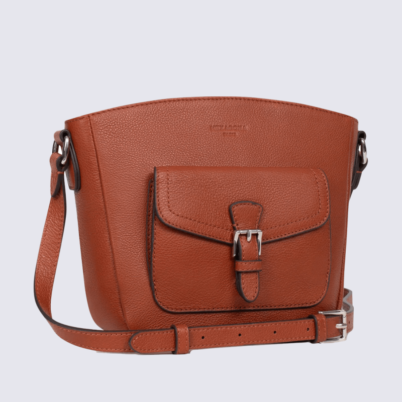 Le sac porté travers Hexagona de la collection Mirabelle séduit par son style féminin, ses lignes harmonieuses et son coloris orange chaleureux, parfaitement adapté à la saison automne-hiver. Confectionné en cuir de vachette grainé, il offre un toucher authentique et une excellente tenue au quotidien. Son format équilibré permet de transporter facilement l’essentiel tout en conservant une silhouette élégante et légère. Les finitions en argent brillant apportent une touche contemporaine qui souligne le caractère raffiné du modèle. Pensé pour une organisation optimale, il dispose d’une poche avant à rabat avec patte aimantée, idéale pour un accès rapide, ainsi que de rangements intérieurs bien structurés. Découvrez tous les modèles Hexagona sur igert.fr !