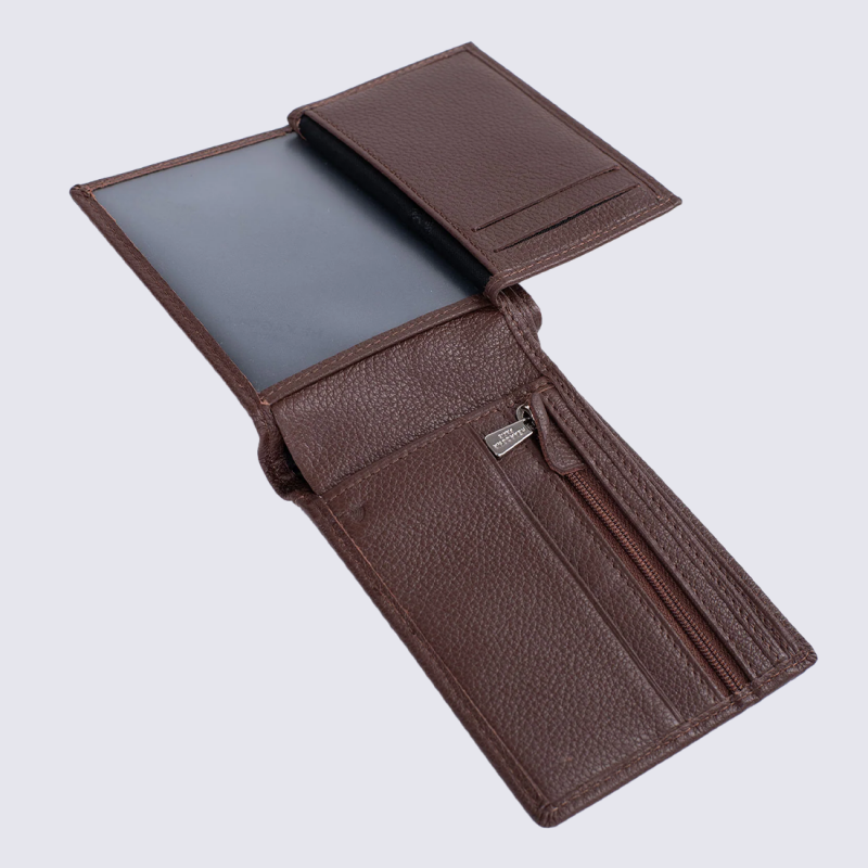 Portefeuille Frandi, porte feuille 2 volets homme en cuir marron