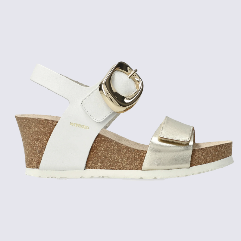 Sandales Mephisto, sandales à talon compensé femme en cuir imprimé multicolore