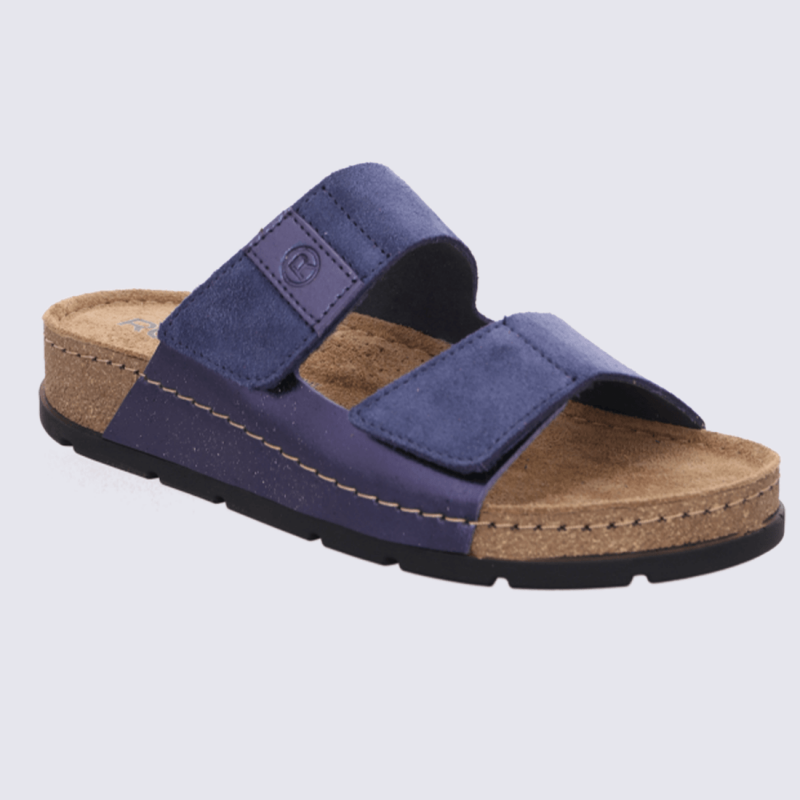 Craquez pour cette mule signée Rohde, au style épuré et moderne. Son dessus en cuir velours bleu océan offre une allure élégante, tandis que la semelle intérieure anatomique en liège et microfibre garantit un confort optimal tout au long de la journée. Les deux brides croisées réglables par scratch assurent un maintien sur-mesure, et la semelle extérieure antidérapante apporte stabilité et légèreté. Idéale pour vos promenades estivales, cette mule associe parfaitement style et bien-être. Découvrez notre sélection de la marque Rohde sur igert.fr !