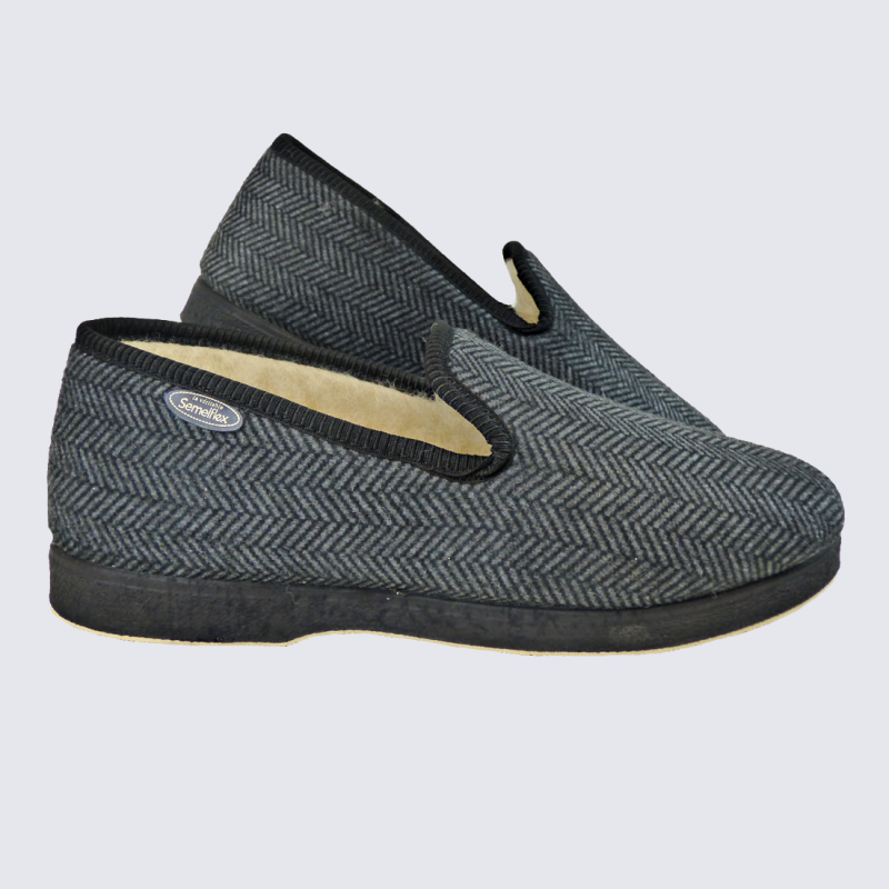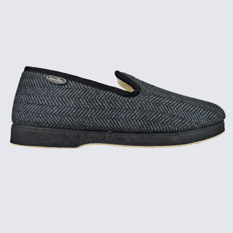 Chaussons Semelflex, chaussons charentaises motif moustache homme gris