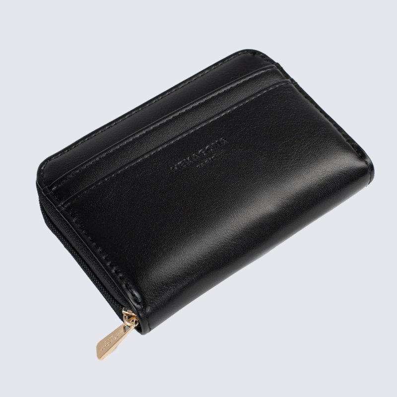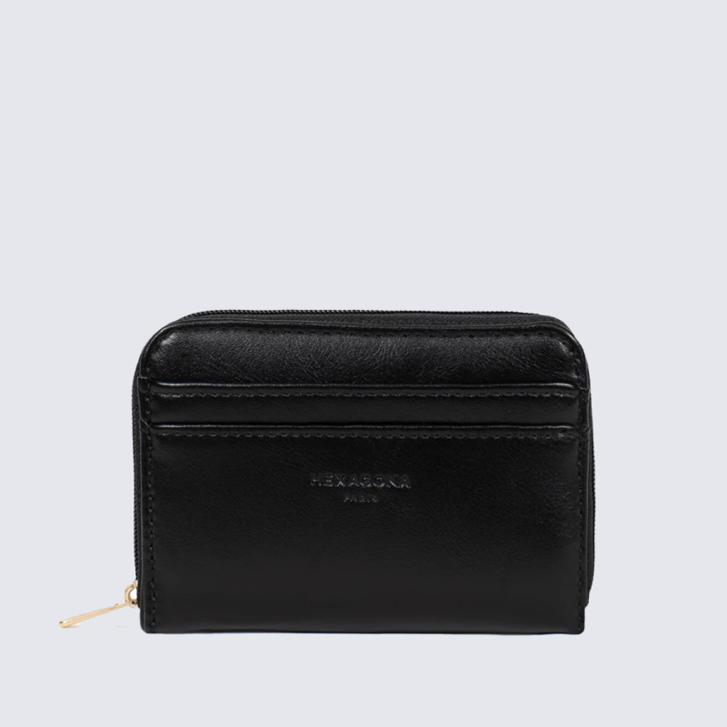 Portefeuille Hexagona, portefeuille, Stop RFID, en cuir de vachette femme noir